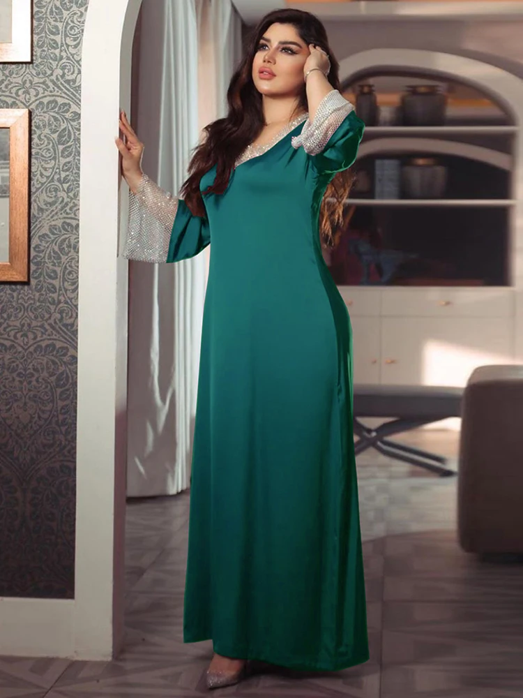 مميزات جلابية ساتان نسائية بأكمام شبكية