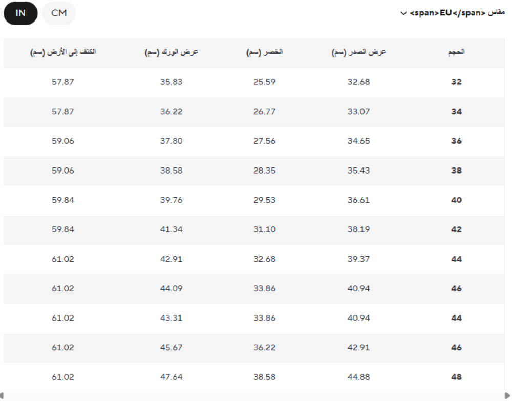 • مقاسات متعددة تناسب جميع الأحجام وتمنح تناسقاً مثالياً