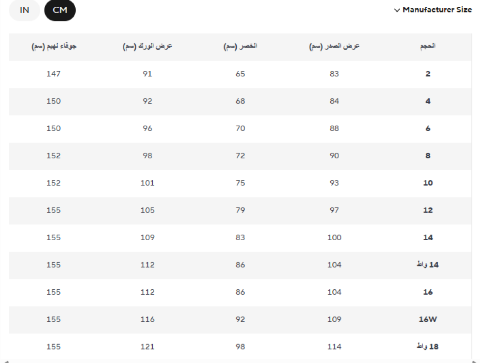 • مقاسات متعددة تضمن تناسقاً مثاليًا مع شكل الجسم