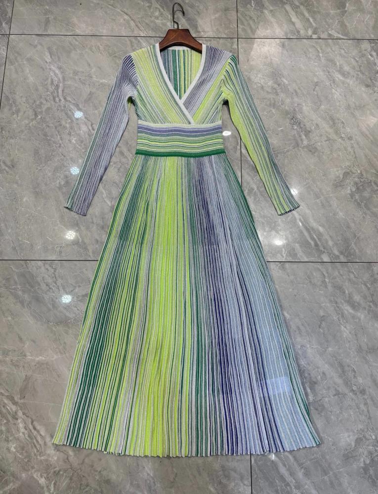 فستان نسائي طويل منسوج برقبة على شكل V أنيقة، بأكمام طويلة توفر مظهراً راقياً وكلاسيكياً. متوفر بألوان جذابة مثل الأخضر، الأحمر والبني، مصنوع من خامات عالية الجودة تناسب جميع المناسبات الرسمية وغير الرسمية.